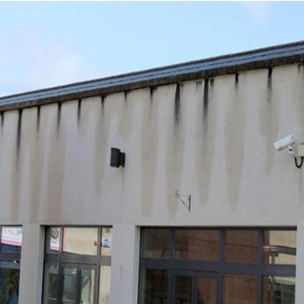 On self-coloured render, if fungal metabolites are prominent over large areas, use Metaclear as the primary treatment. An application of Algoclear can follow if algal discolouration remain.
